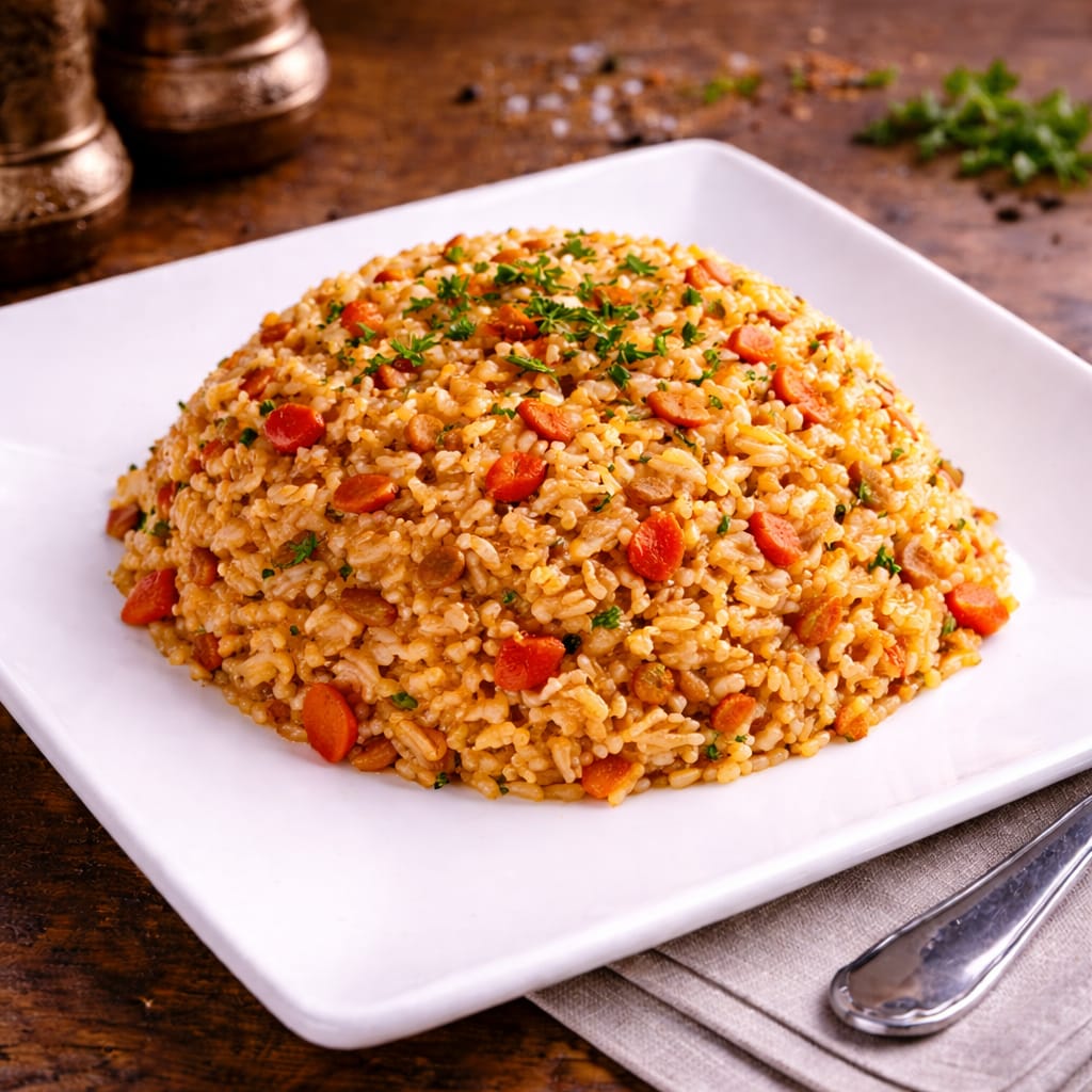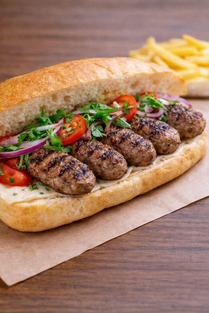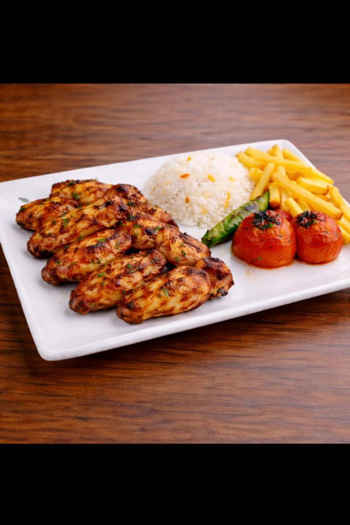 Yanında patates,pilav,ızgara sebze,domates ve biber ile servis edilir.